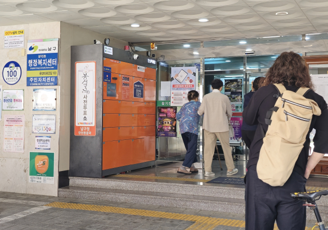 계단이나 엘리베이터를 이용해 투표장으로 향한 유권자들은 사전투표사무원의 안내에 따라 관내 선거인과 관외 선거인으로 나뉘어 투표지를 배부받고 기표소 안으로 들어섰다.