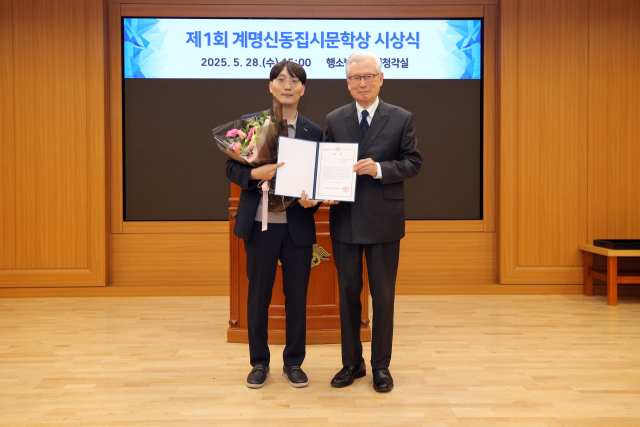 계명대학교(총장 신일희)는 시를 통해 시대를 성찰하고 인문학적 가치를 되새기고자 신설한 '계명신동집시문학상'의 제1회 수상자로 강진환(38) 씨를 선정했다고 30일 밝혔다. 시상식은 지난 28일 계명대 행소박물관 시청각실에서 개최됐으며, 강 씨에게는 상장과 함께 상금 500만 원이 수여됐다.