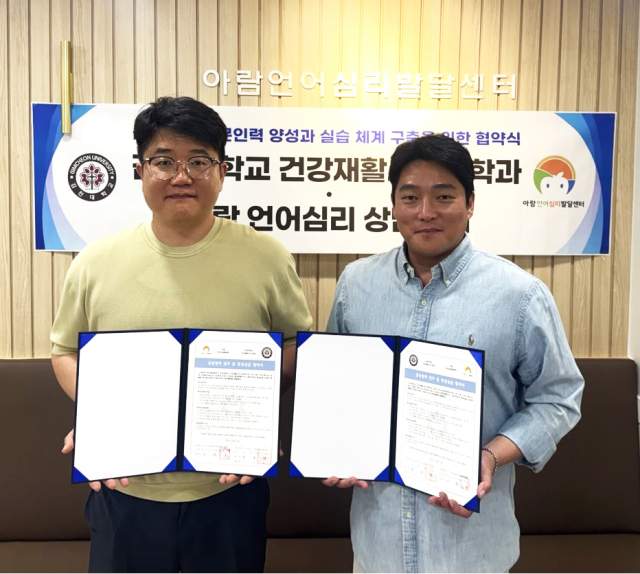 김천대학교 건강재활서비스학과(주임교수 정우민)와 아람 언어심리발달센터(대표 사현우)는 16일, 심리운동 전문인력 양성과 실무 중심의 현장실습 지원을 위한 업무협약(MOU)을 체결했다고 밝혔다.