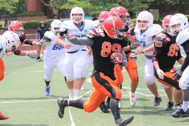 경북대는 15일 대구가톨릭대 구장에서 열린 대회 1부리그 최종 경기에 출격해 접전 끝에 한동대를 34대20으로 제쳤다. 전·후반 통틀어 5개의 터치다운을 기록해 3개의 터치다운으로 추격한 한동대를 따돌렸다.
