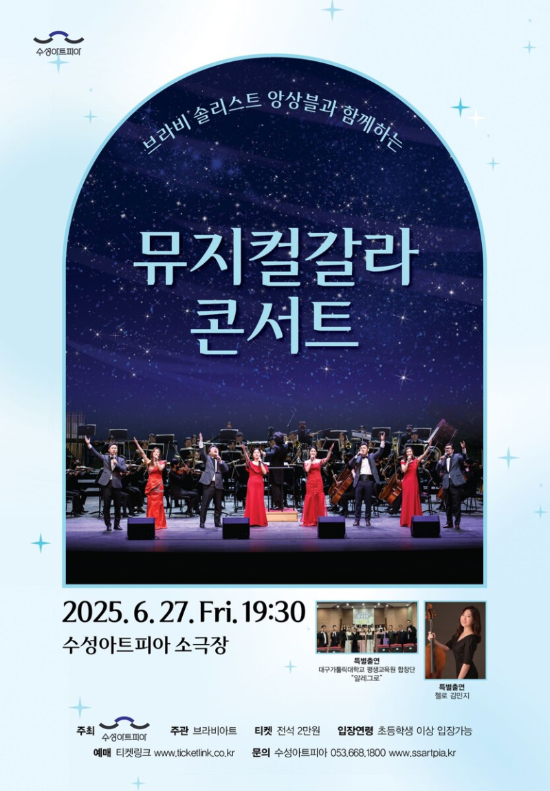 수성아트피아는 27일(금) 오후 7시 30분 소극장에서 지역 대표 성악 앙상블을 초청해 뮤지컬 넘버와 오페라 아리아 명곡을 아우르는 갈라 콘서트를 개최한다.