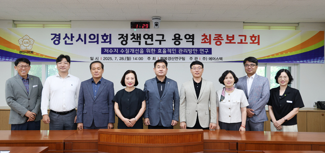 경산시의회 의원연구단체 '행복경산연구팀(대표 윤기현)'은 지난 29일 의회 운영위원회 회의실에서 '저수지 수질개선을 위한 효율적인 관리방안 연구' 최종보고회를 개최했다.
