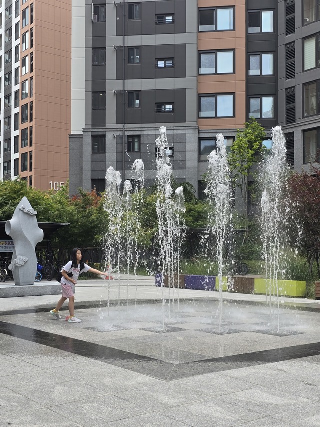 무더운 여름철 폭염이 지속되고 있는 가운데 여러 수경시설 중에서도 ‘아파트 바닥분수’가 지역민들에게 대세로 거듭나고 있다.