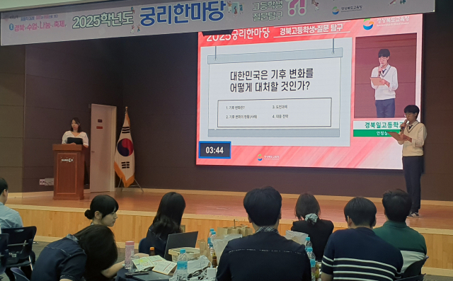 경북교육청이 지난 9일 구미코 3층 대회의실에서 개최한 '제2회 경북 고등학생 질문·탐구 궁리한마당'이 학생들의 웃음과 열정으로 가득 찼다.
