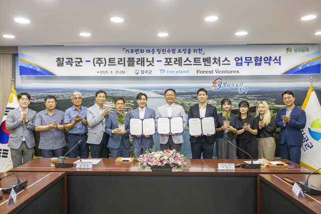 칠곡군은 지난달 25일 (주)트리플래닛과 포레스트벤처스와 함께 기후변화 대응 밀원 수림 조성을 위한 업무협약을 체결했다. 이번 협약은 칠곡군의 양봉특구로서의 입지를 강화하고 지속 가능한 양봉산업 발전을 위한 기반을 마련하기 위해 추진됐다.