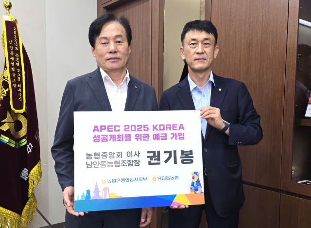 ▲권기봉(사진 왼쪽) 농협중앙회 이사가 '2025 APEC 성공개최 기원 예금'에 가입했다. 농협 안동시지부 제공