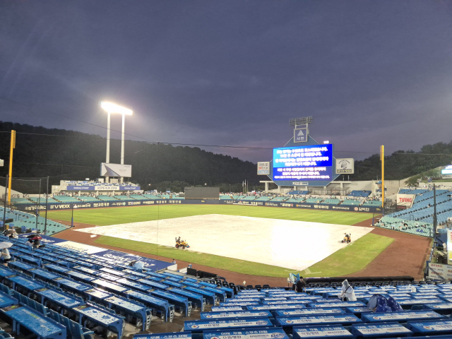 비로 뜨거운 프로야구 열기가 잠시 식었다.