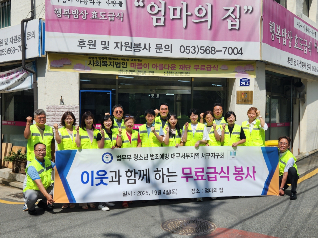 법무부 산하 청소년 범죄예방위원회 대구서구지구협의회 권영석 회장, 김주석(매일탑리더스아카데미 17기) 고문 등 서구지구 위원들은 4일 '엄마의 집'에서 서구 관내 홀몸어르신 500여 명에게 점심식사와 간식 제공 등 600만원 어치의 무상급식 행사를 열었다.