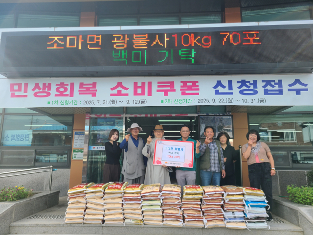 김천시 조마면에 있는 광불사(주지 혜원스님)는 지난 19일, 추석 명절을 맞아 어려운 이웃을 위해 써 달라며 사랑의 쌀 70포(10㎏들이·170만 원 상당)를 조마면 행정복지센터에 기탁했다고 밝혔다.