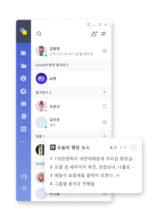 실제로 네이트온은 현재도 공식 홈페이지를 통해 윈도우 및 맥용 설치 파일을 제공하고 있으며, 모바일 앱 또한 구글 플레이스토어와 애플 앱스토어에서 내려받을 수 있는 상태다. 메시지, 그룹채팅, 파일 전송, 캘린더 연동 등 주요 기능은 여전히 유지되고 있다.