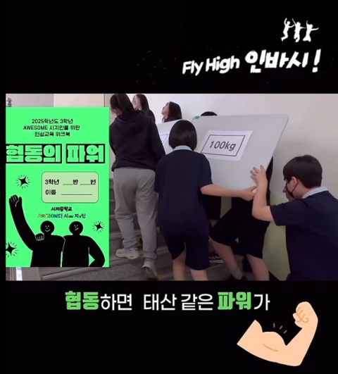 대구 시지중학교 인성교육워크북 동아리 학생들이 '2025년 인성 종소리 캠페인'에서 작품 '플라이 하이(Fly High) 인바시'로 중등 부문 1위를 차지했다.