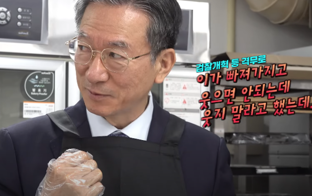 그러나 그 순간 빠진 앞니가 드러났고, 그는 곧바로 손으로 입을 가리며 "웃으면 안 되는데", "이가 빠져져서 웃지 말라했는데"라고 말해 주변의 웃음을 자아냈다. 정 장관은 치아가 빠진 이유를 구체적으로 언급하지 않았지만, 영상 자막에는 '검찰개혁 등 격무로'라는 설명이 더해졌다.